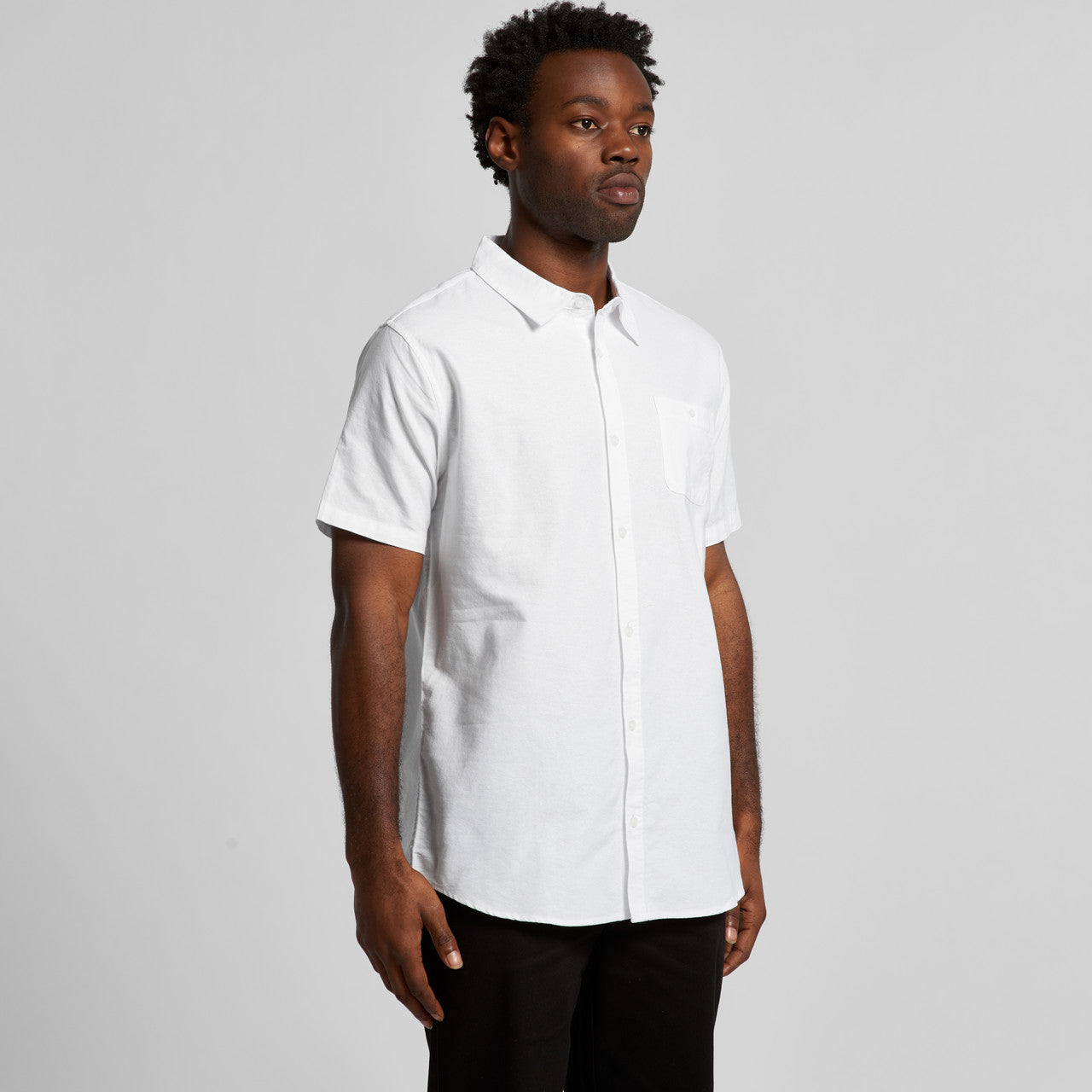 Short sleeve button up shirt, button close chest pocket, clear buttons, side seamed, back yoke, preshrunk to minimise shrinkage