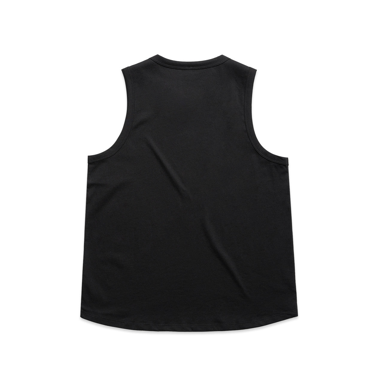 Wide binding at neck and armholes, side seamed, shoulder to shoulder tape, double needle hems