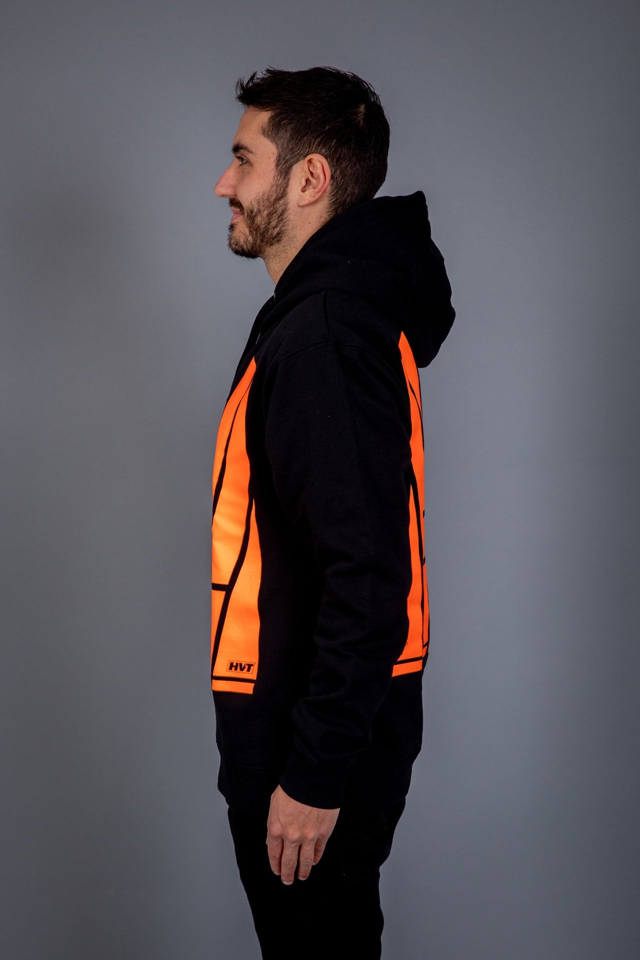 Hoodie,[pocketless] with Transform HI-Vis print on the front and back. Design measures 35cm wide.