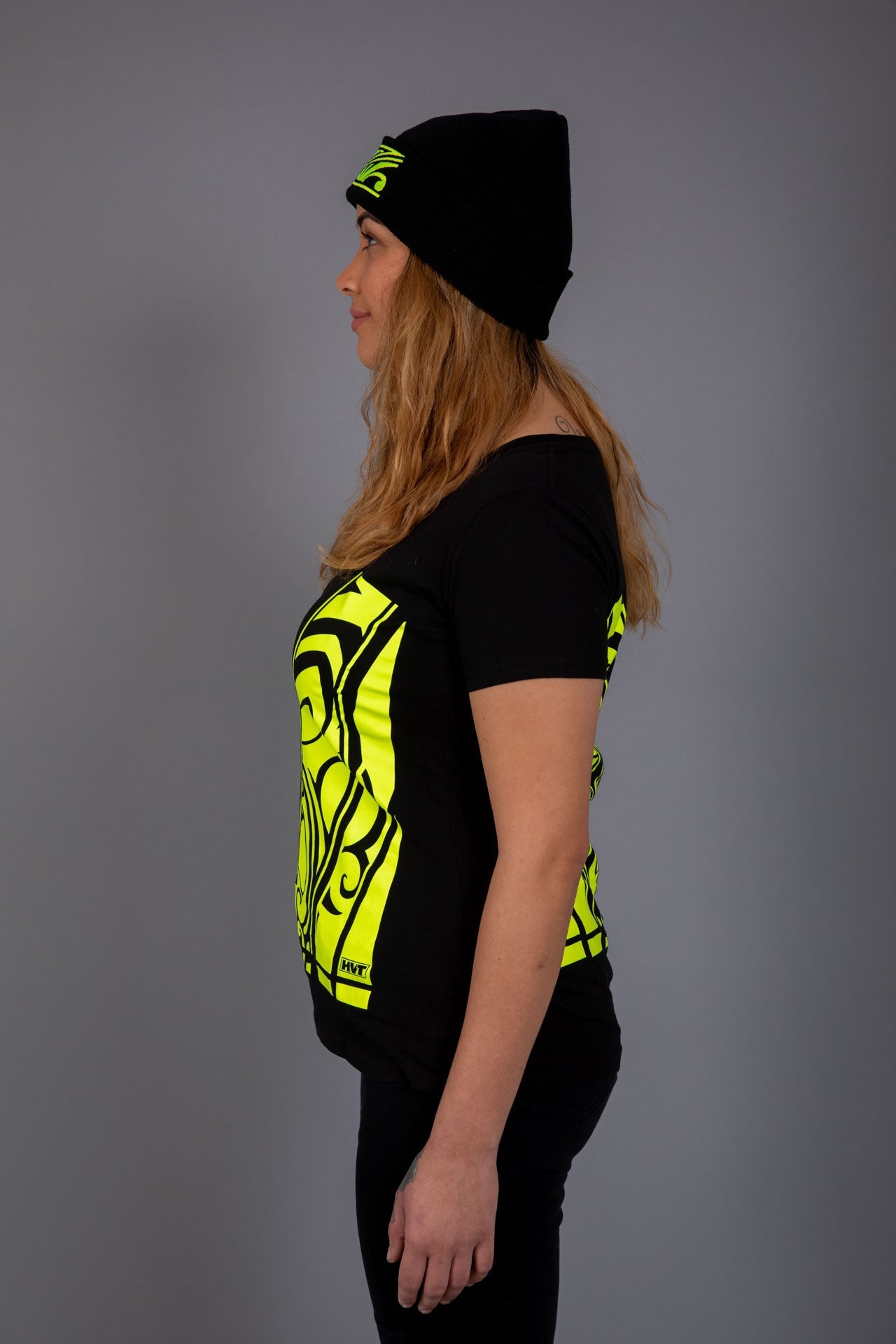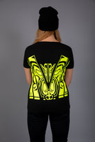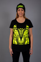Scope Neck Womens T-Shirt, with NZ Maori Designed HI-Vis print on the front and back.