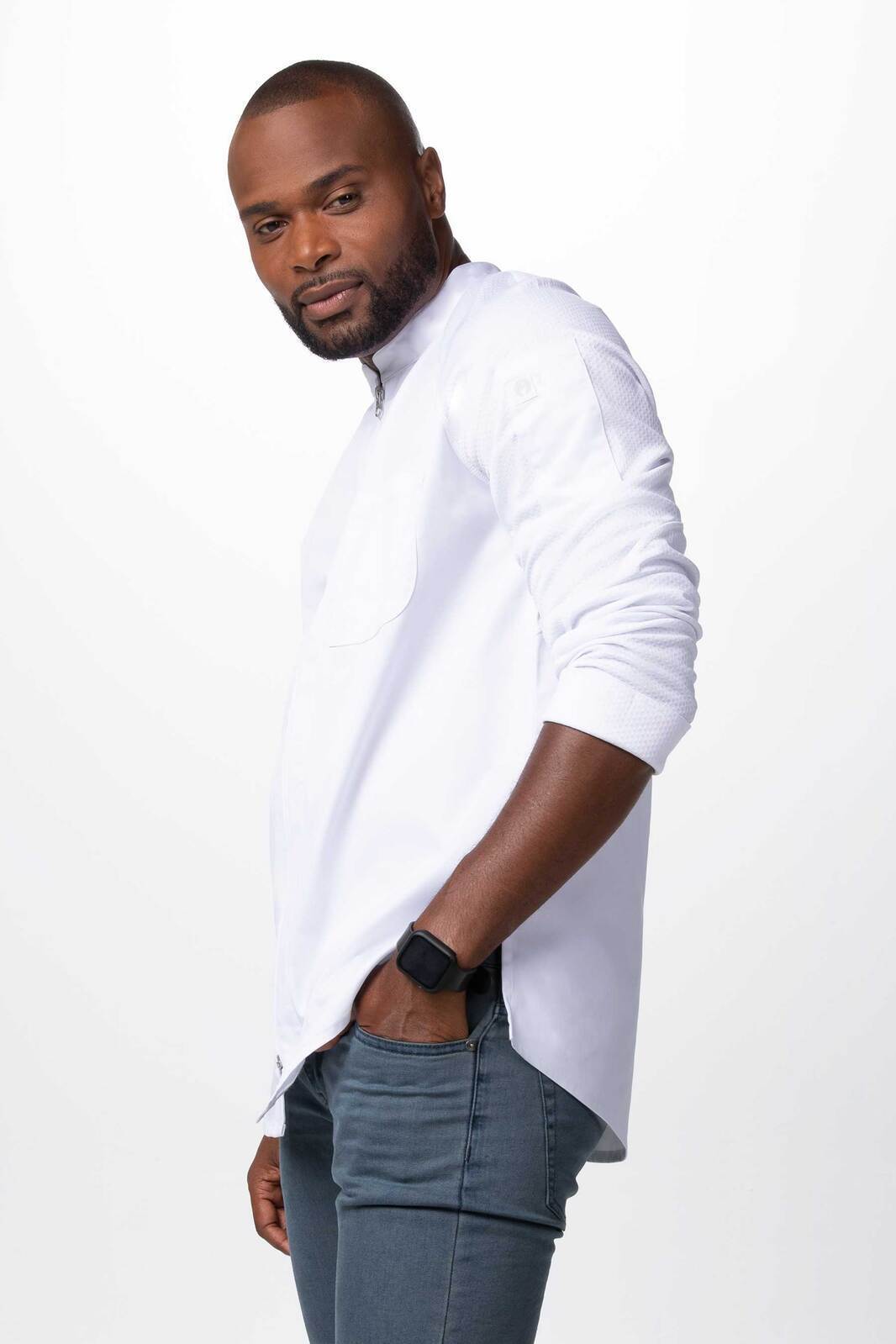 If you love zipper jackets then there's no doubt you will love the Nepal Chef Jacket. Similar to Nepal being the heart of the Himalayas, our Nepal Chef jacket will quickly find its own way into your heart. Featuring our recycled, soft-touch knitted, Cool Vent™ mesh fabric on the sleeves and back yoke, a comfortable fit, and a minimalistic design, the Nepal Chef Jacket will be everything you need all at once when cooking inspires you to stretch the limits.